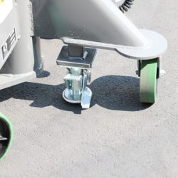 Base: 30″ Square, Formed Steel Legs and Welded Steel Frame, 2x Each Ø8″ Poly on Iron Rigid and Swivel Casters, 1x Foot Actuated Floor Lock