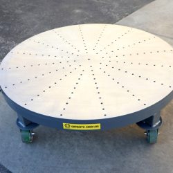 Deck: Ø50″, 1″ Thick Blanchard Ground Welded Steel Deck, Bolt on, No Paint on Top Surface, Tapped Holes, 360º Continuous Rotation at any Height, Deck Rotation Lock Handle